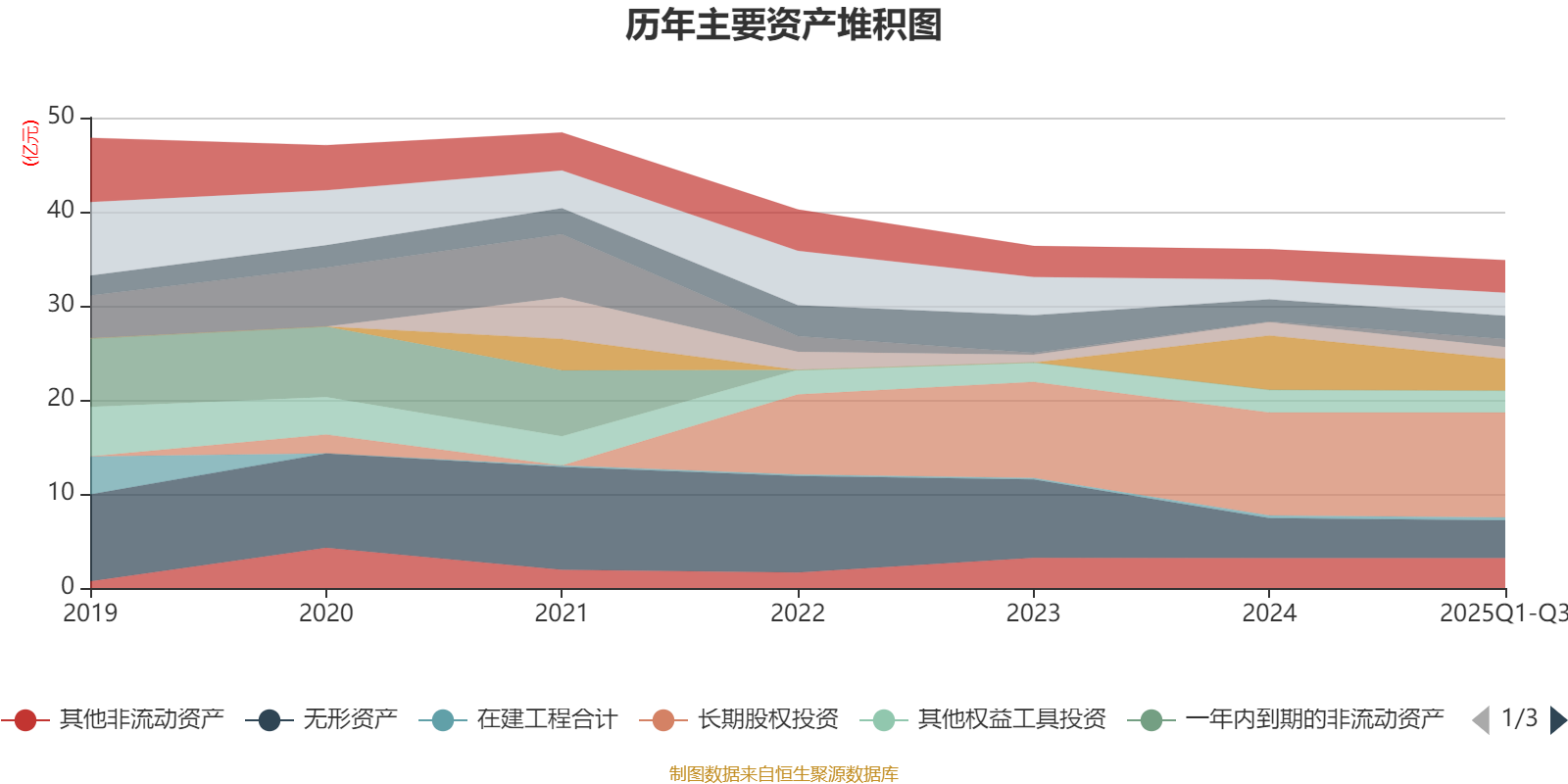 资产重大变化方面,截至2025年三季度末,公司划分为持有待售的资产较上年末减少41.6%,占公司总资产比重下降6.36个百分点;其他应收款(含利息和股利)较上年末增加875.18%,占公司总资产比重上升2.2个百分点;长期股权投资较上年末增加1.98%,占公司总资产比重上升1.63个百分点;货币资金较上年末增加16.56%,占公司总资产比重上升1.19个百分点。