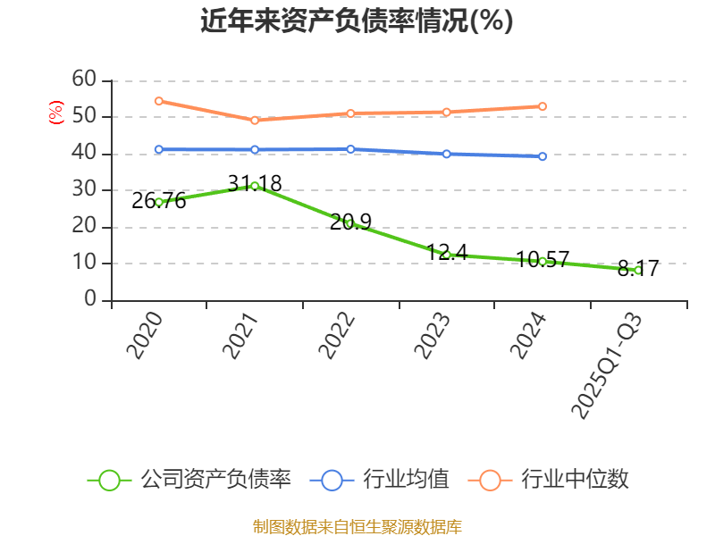 2025年前三季度,公司流动比率为5.12,速动比率为4.61。