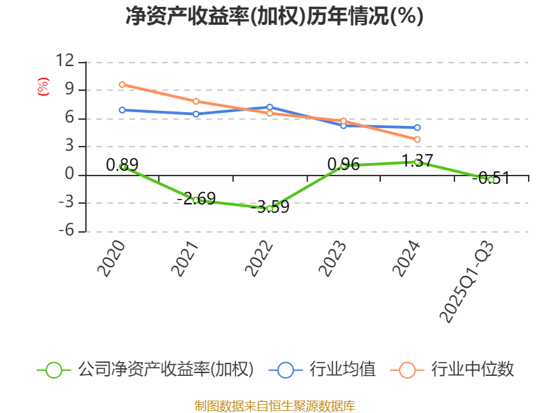 盈利能力方面, 2025年前三季度公司加权平均净资产收益率为-0.51%,同比下降0.79个百分点。公司2025年前三季度投入资本回报率为-0.34%,较上年同期下降0.57个百分点。