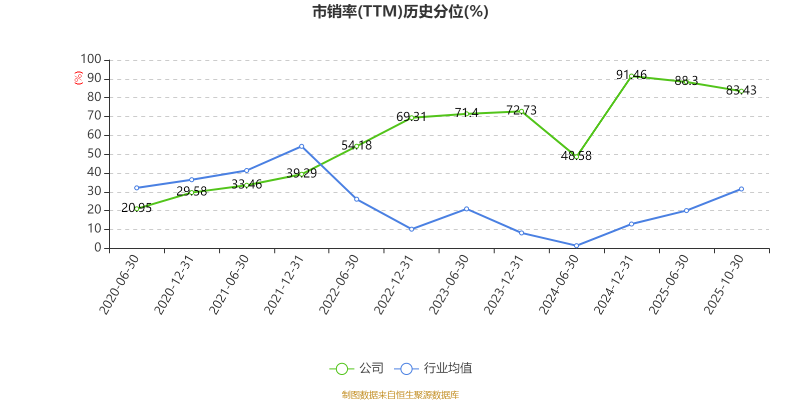 文中市盈率和市销率采用TTM方式,即以截至最近一期财报(含预报)12个月的数据计算。市净率采用LF方式,即以最近一期财报数据计算。三者的分位数计算区间均为公司上市以来至最新公告日。