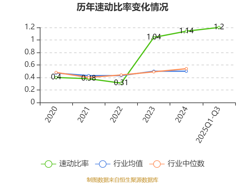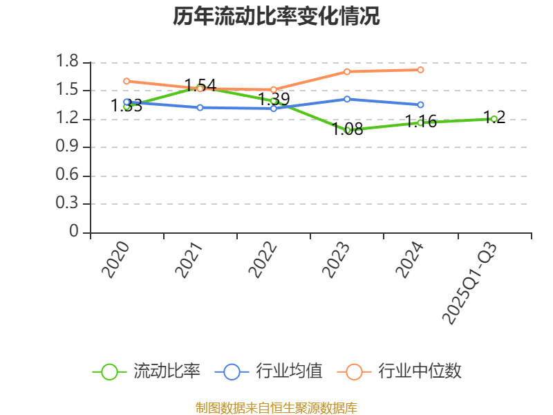2025年前三季度,公司流动比率为1.2,速动比率为1.2。
