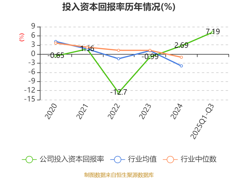 盈利能力方面, 2025年前三季度公司加权平均净资产收益率为7.67%,同比上升3.84个百分点。公司2025年前三季度投入资本回报率为7.19%,较上年同期上升4.64个百分点。