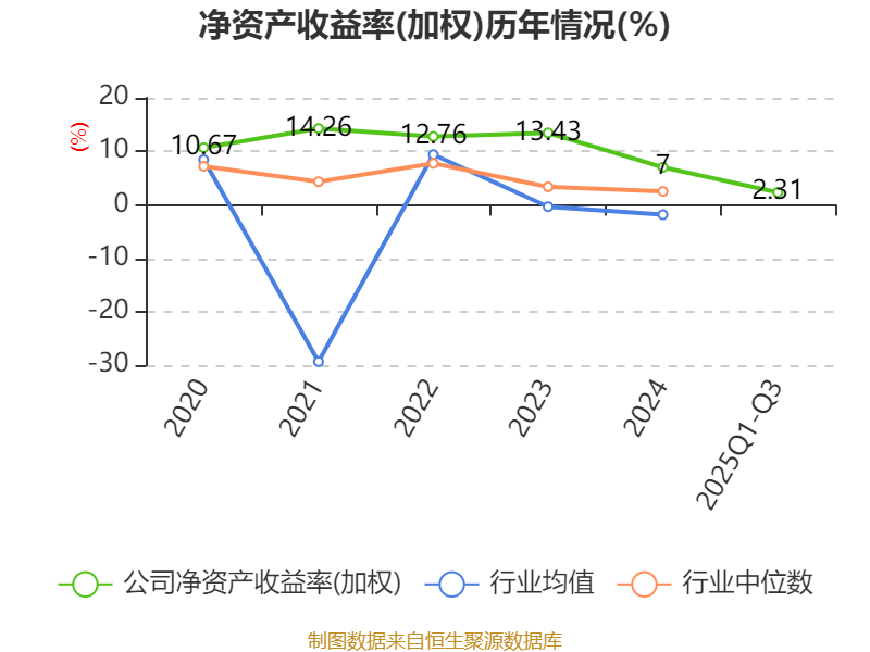 盈利能力方面, 2025年前三季度公司加权平均净资产收益率为2.31%,同比下降0.48个百分点。公司2025年前三季度投入资本回报率为1.31%,较上年同期下降0.42个百分点。