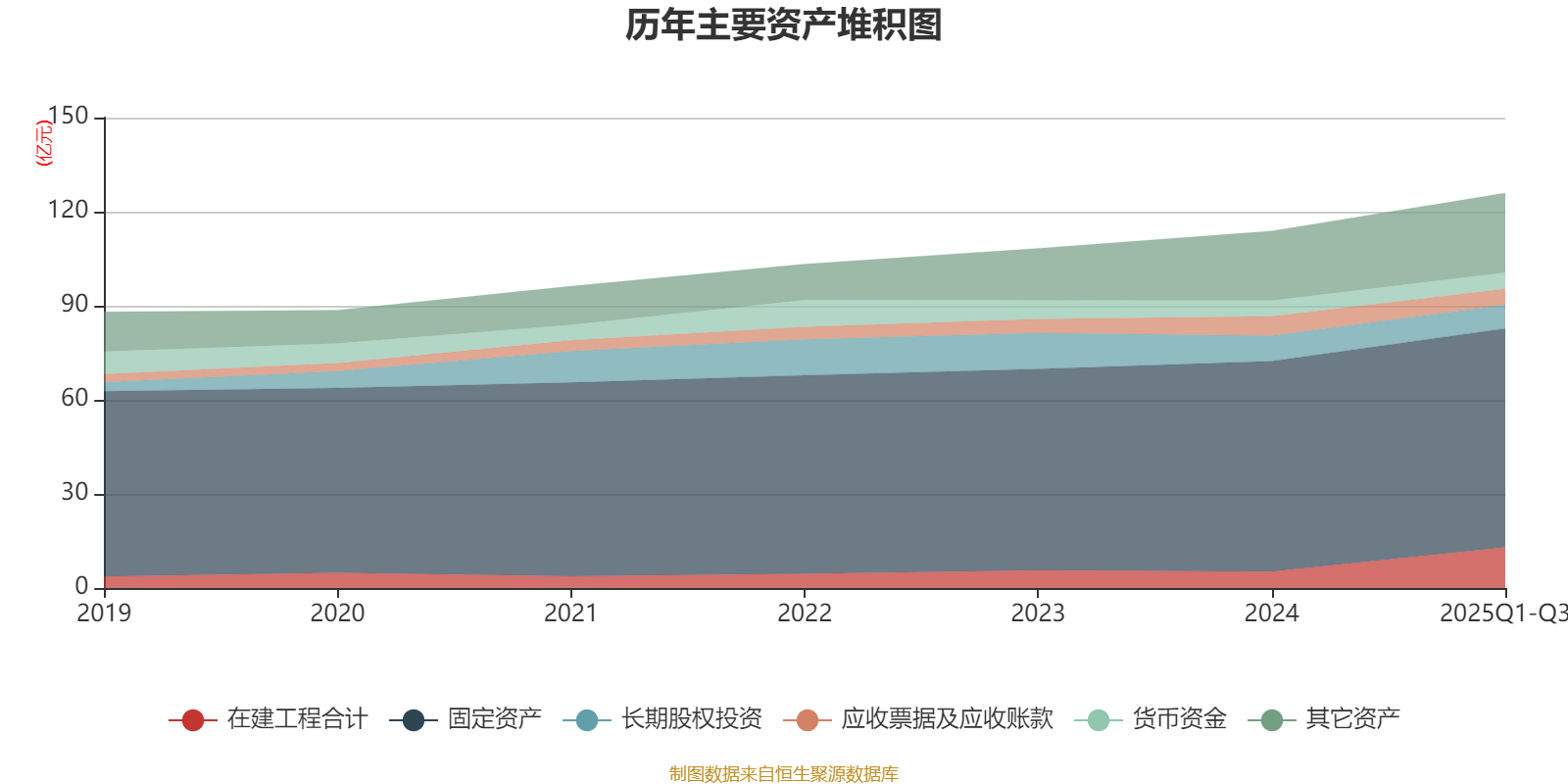 资产重大变化方面,截至2025年三季度末,公司在建工程合计较上年末增加149.48%,占公司总资产比重上升5.74个百分点;固定资产较上年末增加3.91%,占公司总资产比重下降3.6个百分点;应收票据及应收账款较上年末减少17.9%,占公司总资产比重下降1.39个百分点;其他流动资产较上年末增加113.14%,占公司总资产比重上升1.17个百分点。