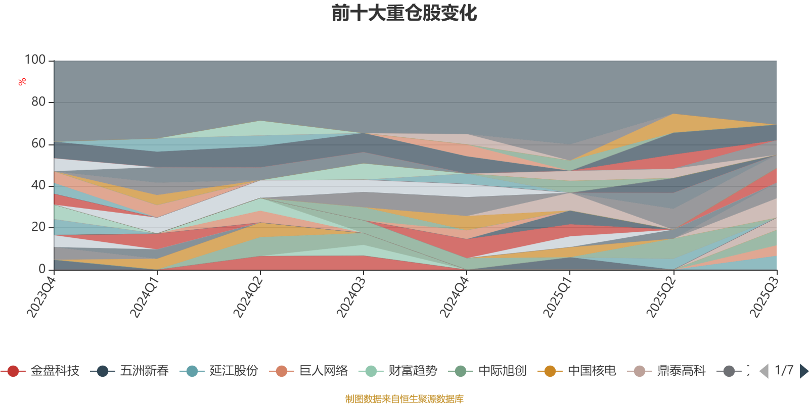 该基金持股集中度较高。截至2025年三季度末,基金十大重仓股分别是汇绿生态、新易盛、生益科技、中际旭创、寒武纪、工业富联、延江股份、生益电子、鼎泰高科、巨人网络。