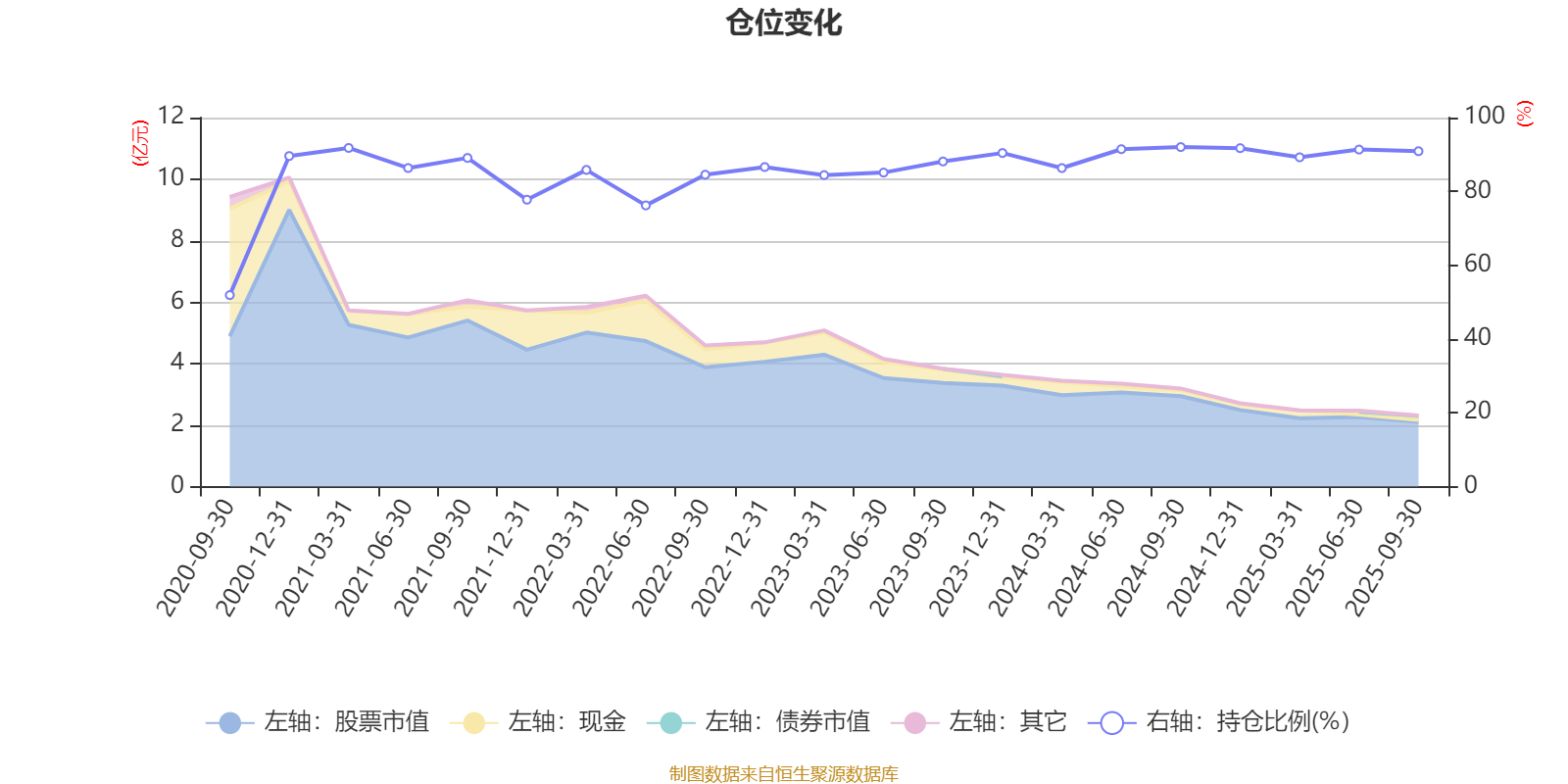 据定期报告数据统计,近三年平均股票仓位为88.97%,同类平均为85.66%。2024年三季度末基金达到92.01%的最高仓位,2020年三季度末最低,为51.89%。