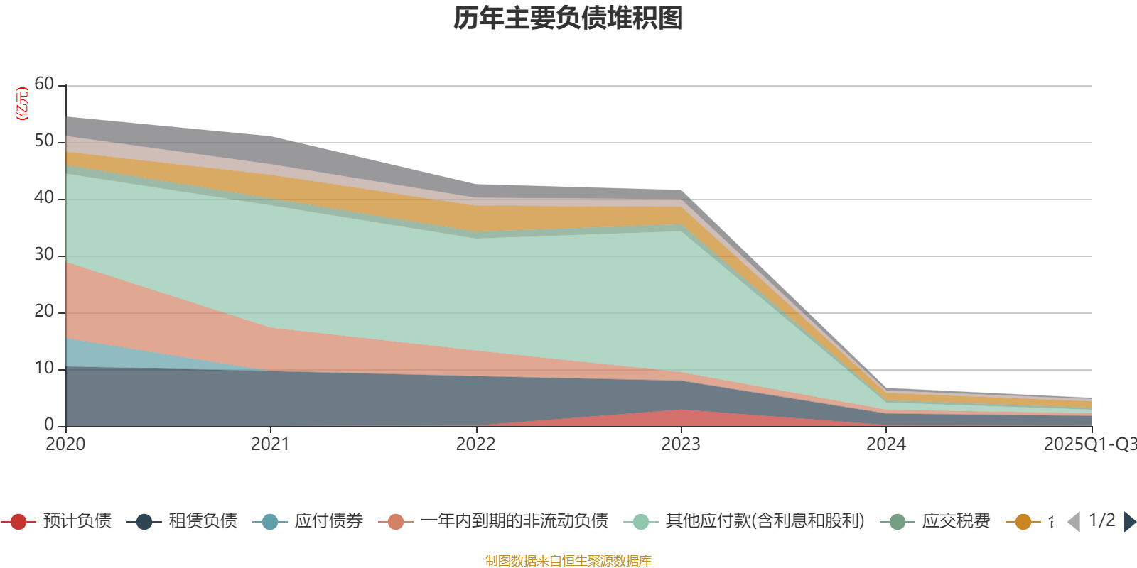 负债重大变化方面,截至2025年三季度末,公司其他应付款(含利息和股利)较上年末减少51.12%,占公司总资产比重下降3.28个百分点;长期应付款合计较上年末减少100%,占公司总资产比重下降1.48个百分点;租赁负债较上年末减少17.62%,占公司总资产比重下降1.03个百分点;一年内到期的非流动负债较上年末减少30.34%,占公司总资产比重下降0.87个百分点。