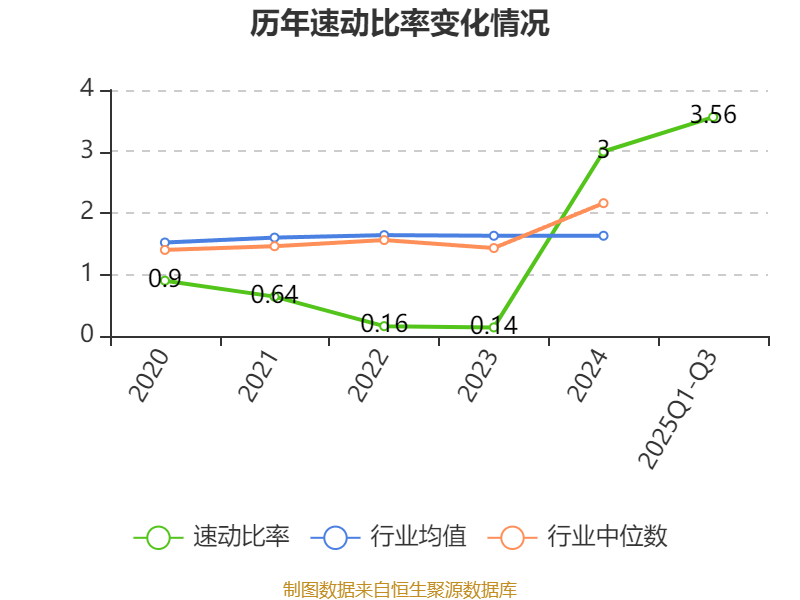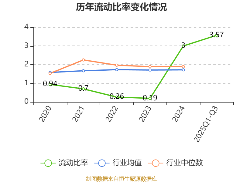 2025年前三季度,公司流动比率为3.57,速动比率为3.56。