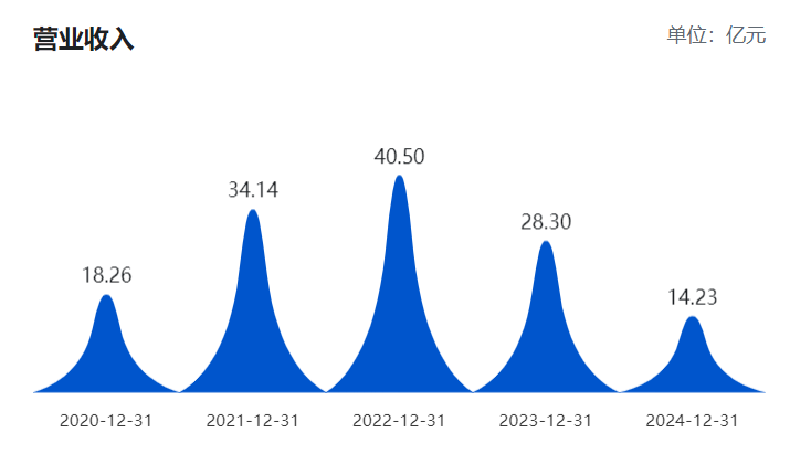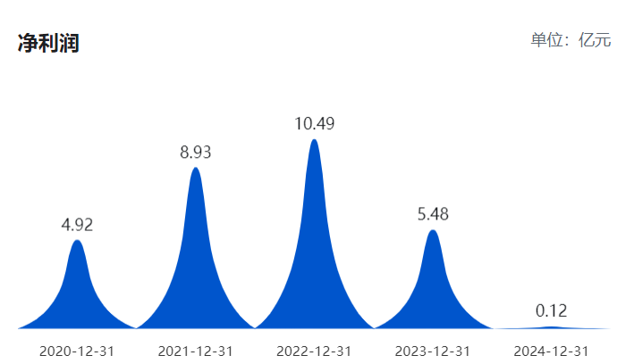 从往期财报数据来看,酒鬼酒业绩自2015年连续8年增长,在2022年达到巅峰,2023年起公司业绩开始断崖式下滑。2021年至2024年,公司营收从34.14亿元骤降至14.23亿元,增速从86.97%的高点跌至-49.70%;归母净利润更是从8.93亿元急剧缩水至0.12亿元,2024年同比下滑近98%。