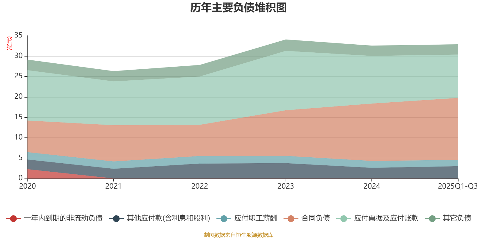 负债重大变化方面,截至2025年三季度末,公司应付票据及应付账款较上年末减少9.07%,占公司总资产比重下降1.6个百分点;合同负债较上年末增加8.21%,占公司总资产比重上升0.97个百分点;其他应付款(含利息和股利)较上年末增加16%,占公司总资产比重上升0.42个百分点;应付职工薪酬较上年末减少9.54%,占公司总资产比重下降0.24个百分点。