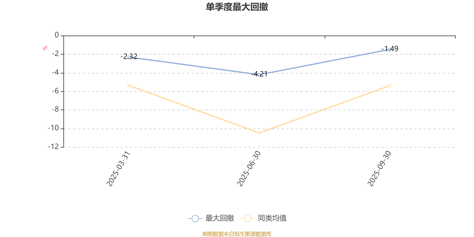 截至10月29日,基金成立以来最大回撤为14.55%。单季度最大回撤出现在2025年二季度,为4.21%。