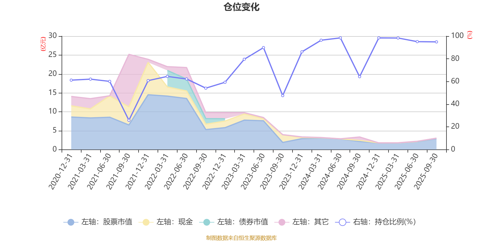据定期报告数据统计,近三年平均股票仓位为84.06%,同类平均为85.66%。2024年上半年末基金达到98.49%的最高仓位,2021年三季度末最低,为25.81%。