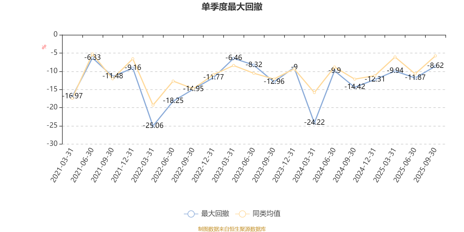 通过所选区间该基金净值增长率分位图,可以观察该基金与同类基金业绩比较情况。图为坐标原点到区间内某时点的净值增长率在同类基金中的分位数。