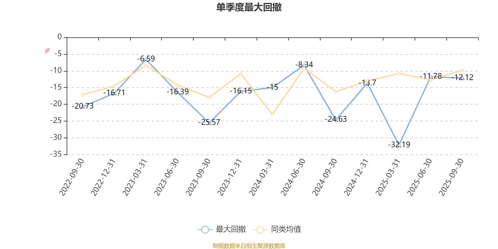 截至10月29日,基金近三年最大回撤为41.15%,同类可比基金排名58/159。单季度最大回撤出现在2025年一季度,为32.19%。