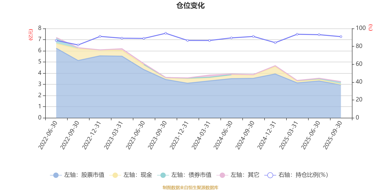 据定期报告数据统计,近三年平均股票仓位为89.96%,同类平均为86.77%。2023年三季度末基金达到94.65%的最高仓位,2022年三季度末最低,为81.61%。