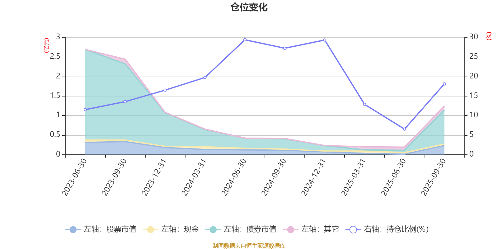 基金管理人在三季报中表示,本基金作为一只偏债混合基金,股票和可转债合并计算为权益仓位,考虑到进一步控制回撤,我们降低了股票和可转债的仓位。