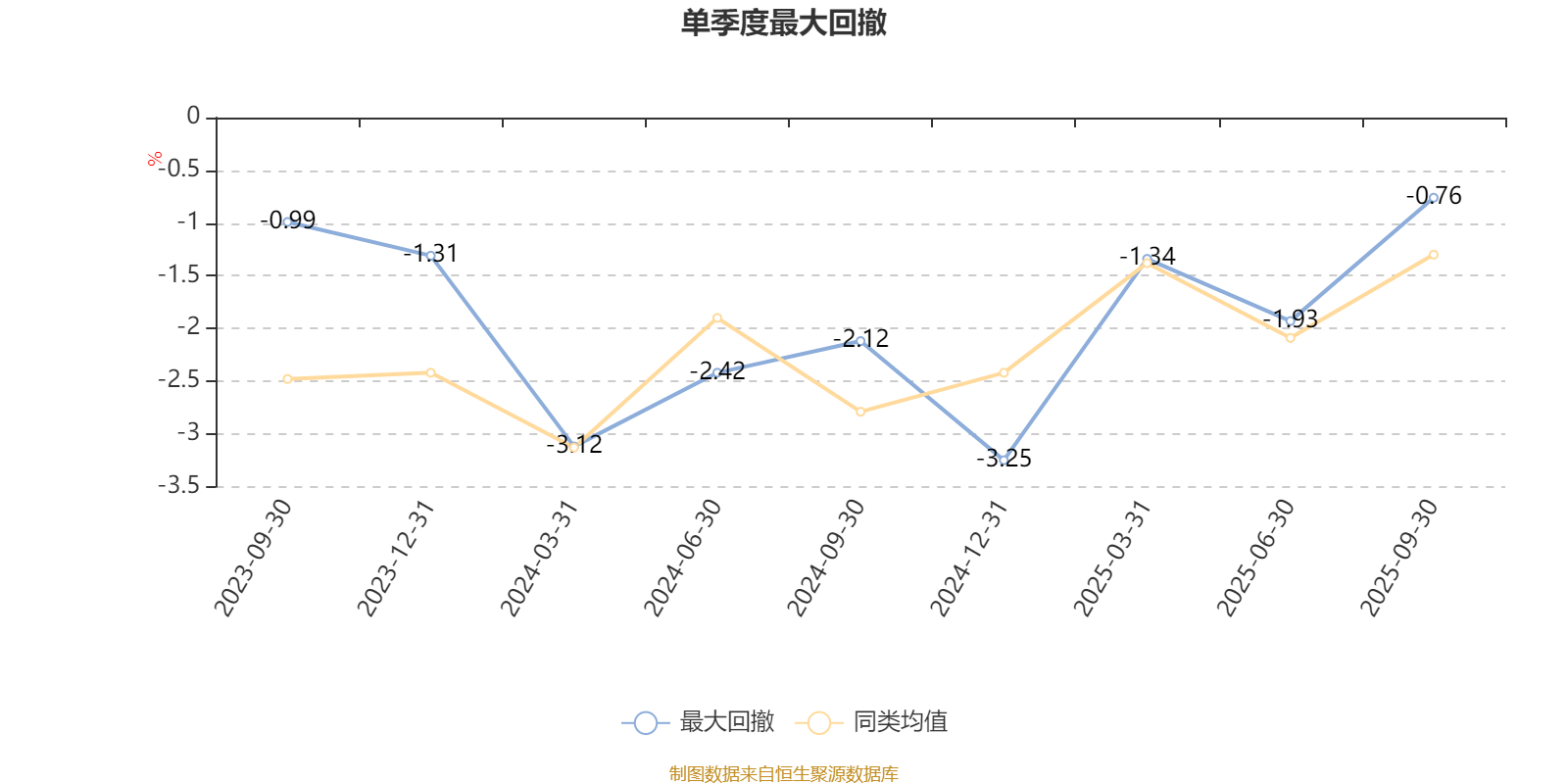 截至10月29日,基金成立以来最大回撤为3.87%。单季度最大回撤出现在2024年四季度,为3.25%。