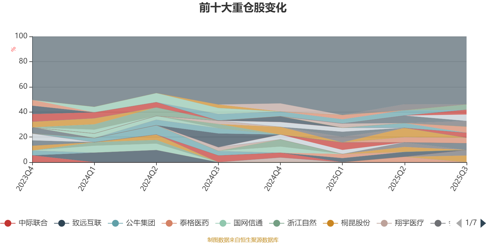 截至2025年三季度末,基金十大重仓股分别是桐昆股份、三星医疗、华恒生物、思源电气、泰凌微、藏格矿业、会稽山、科博达、华峰化学、顺络电子。