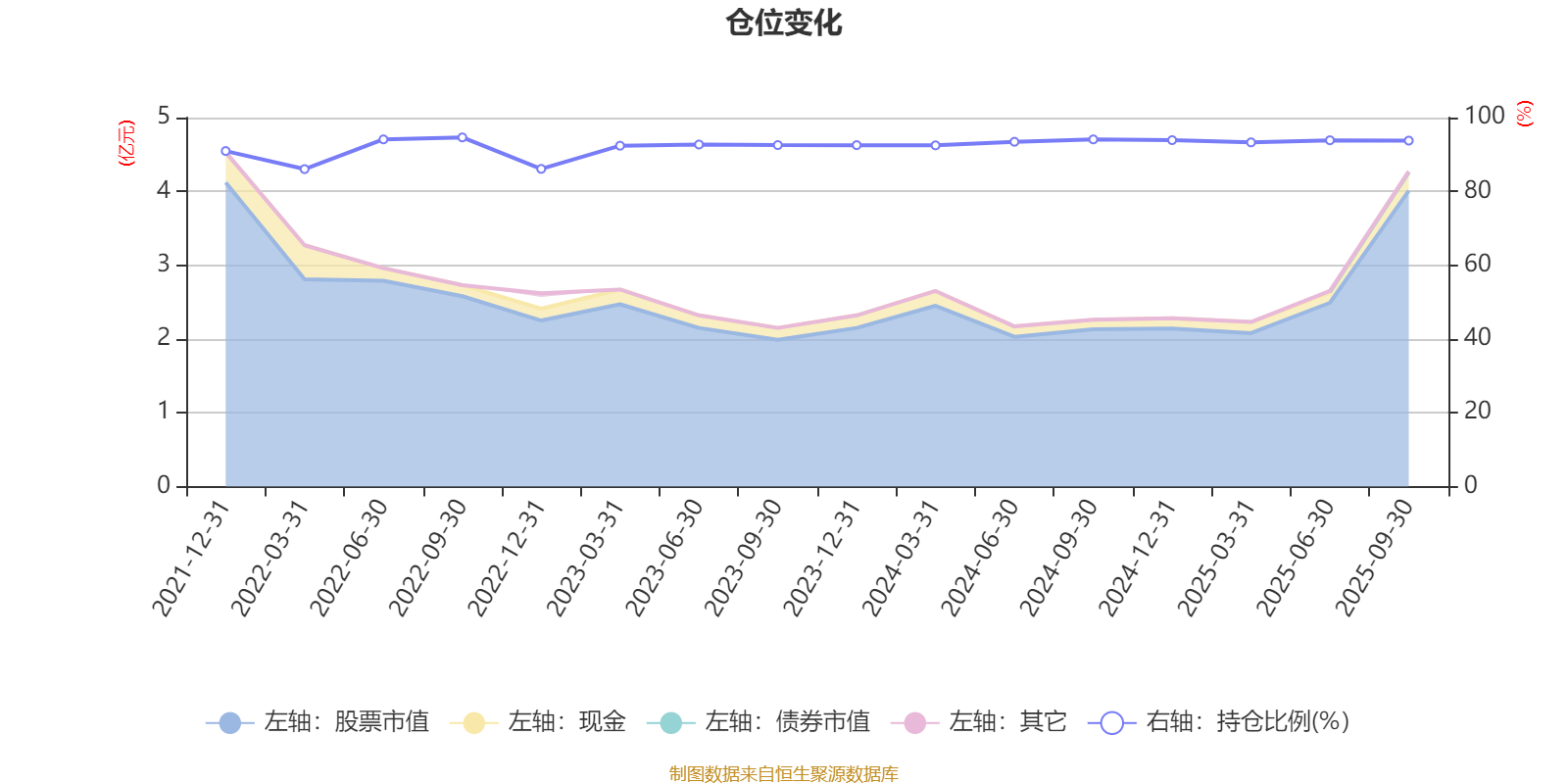 据定期报告数据统计,近三年平均股票仓位为92.59%,同类平均为85.66%。2022年三季度末基金达到94.63%的最高仓位,2022年一季度末最低,为86.04%。