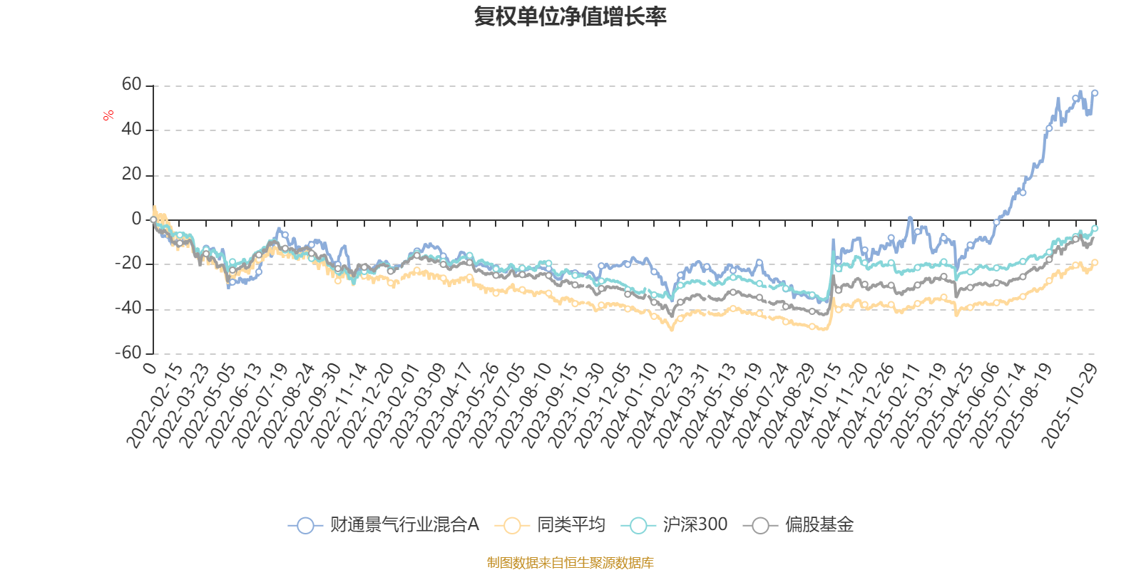 截至10月29日,财通景气行业混合A近三个月复权单位净值增长率为24.90%,位于同类可比基金126/621;近半年复权单位净值增长率为80.16%,位于同类可比基金26/621;近一年复权单位净值增长率为83.34%,位于同类可比基金17/611;近三年复权单位净值增长率为115.84%,位于同类可比基金7/518。