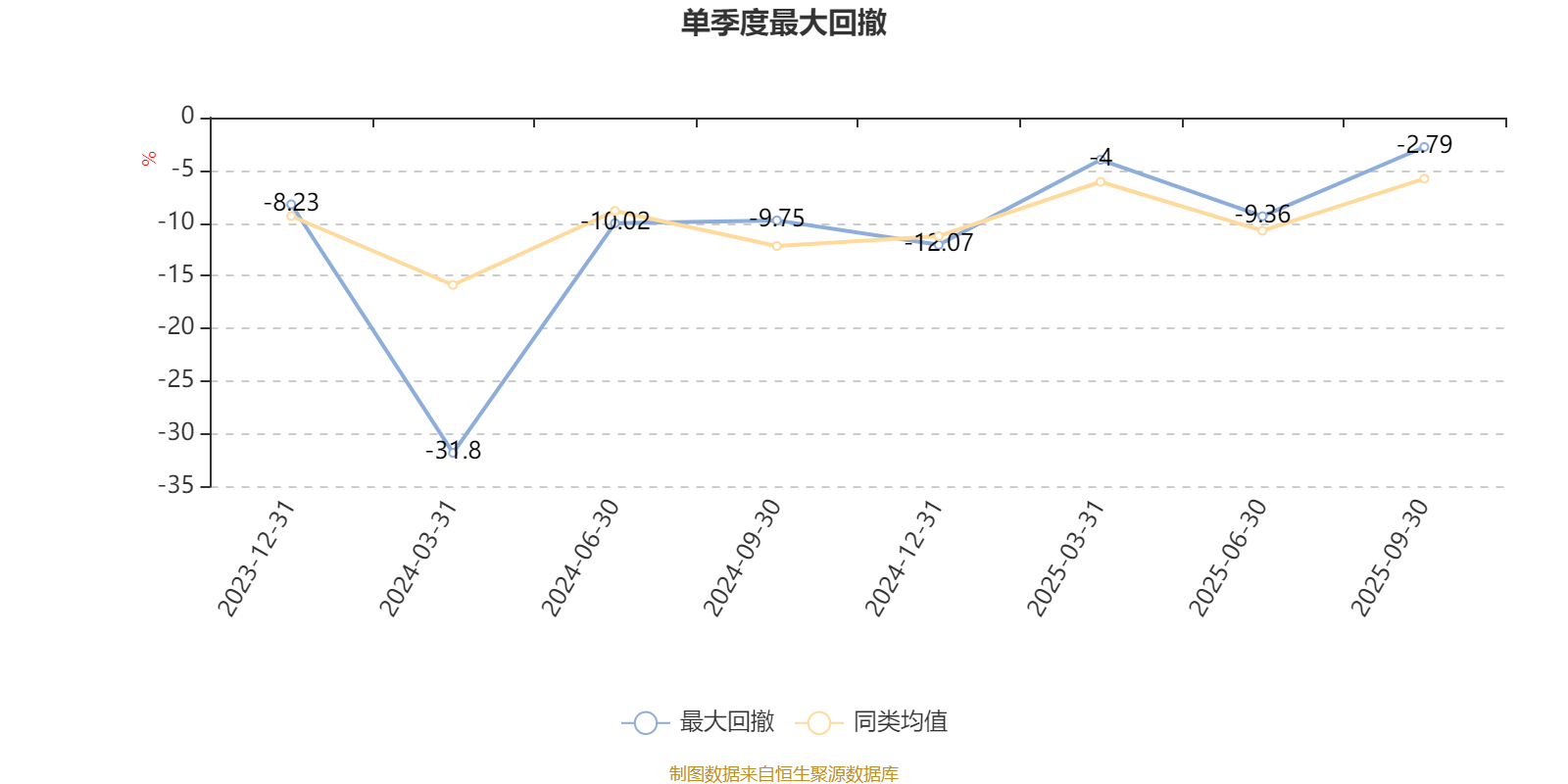 截至10月29日,基金成立以来最大回撤为34.46%。单季度最大回撤出现在2024年一季度,为31.8%。