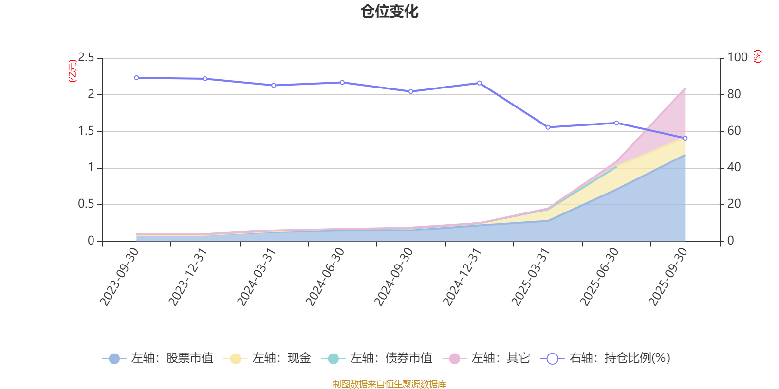 据定期报告数据统计,成立以来平均股票仓位为78.02%,同类平均为83.73%。2023年三季度末基金达到89.4%的最高仓位,2025年三季度末最低,为56.41%。