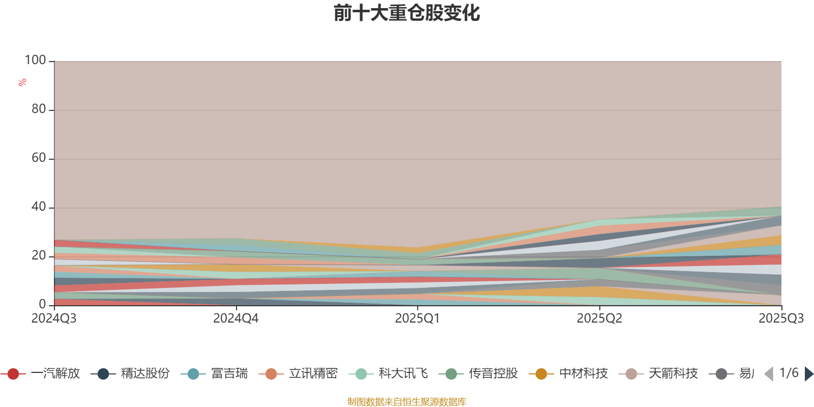截至2025年三季度末,基金十大重仓股分别是中微半导、威海广泰、宝新能源、天箭科技、海能实业、TCL科技、深天马A、国星光电、航新科技、京东方A。
