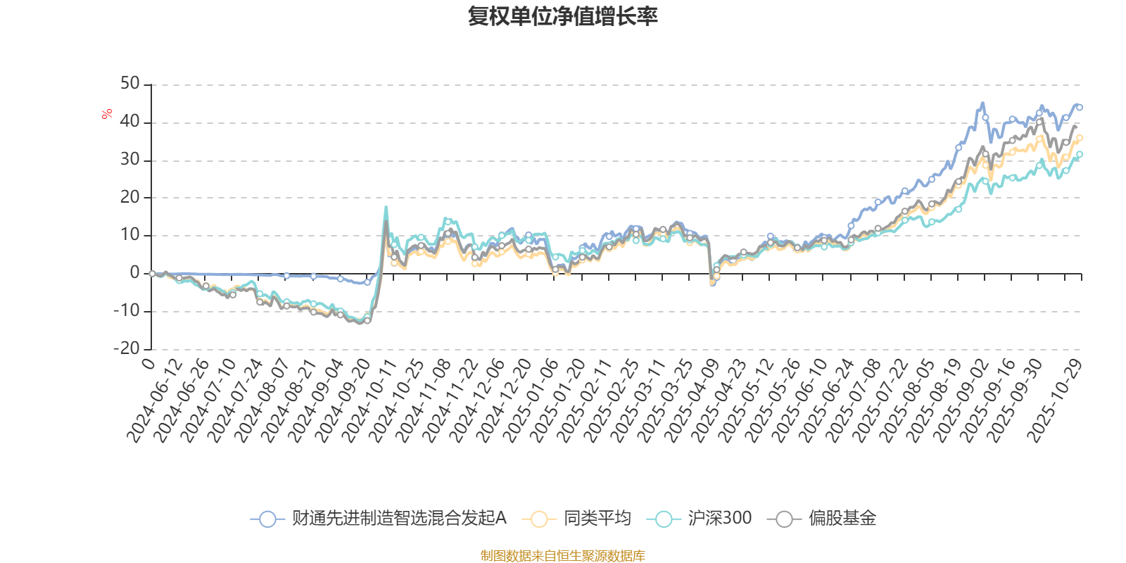 截至10月29日,财通先进制造智选混合发起A近三个月复权单位净值增长率为15.27%,位于同类可比基金296/689;近半年复权单位净值增长率为38.06%,位于同类可比基金199/688;近一年复权单位净值增长率为35.04%,位于同类可比基金232/657。