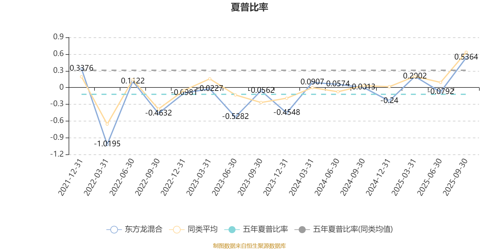 截至9月30日,基金近三年夏普比率为0.2066,位于同类可比基金1029/1285。