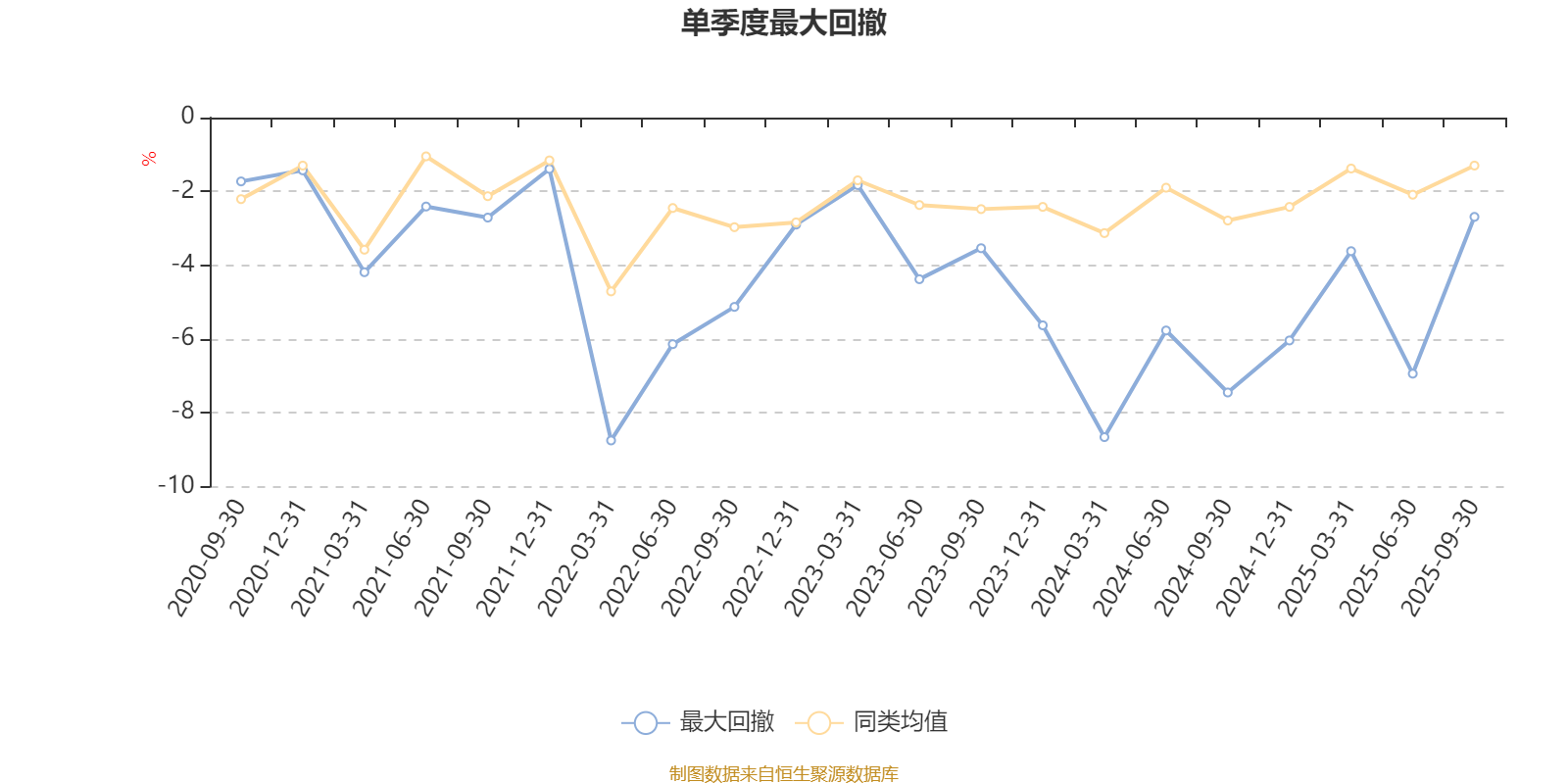 通过所选区间该基金净值增长率分位图,可以观察该基金与同类基金业绩比较情况。图为坐标原点到区间内某时点的净值增长率在同类基金中的分位数。