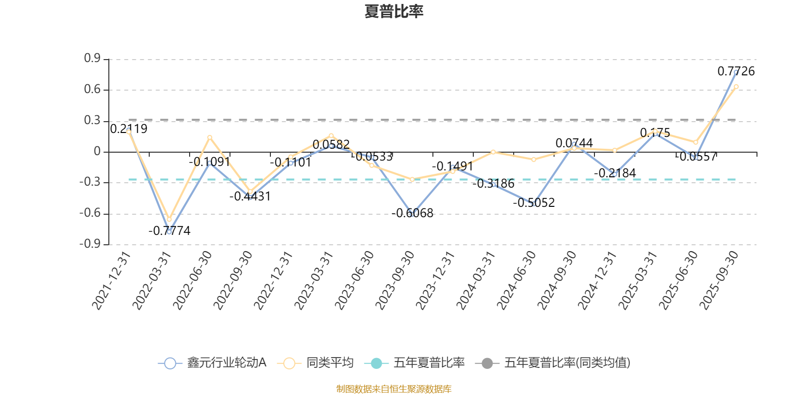 截至9月30日,基金近三年夏普比率为-0.225,位于同类可比基金1248/1285。