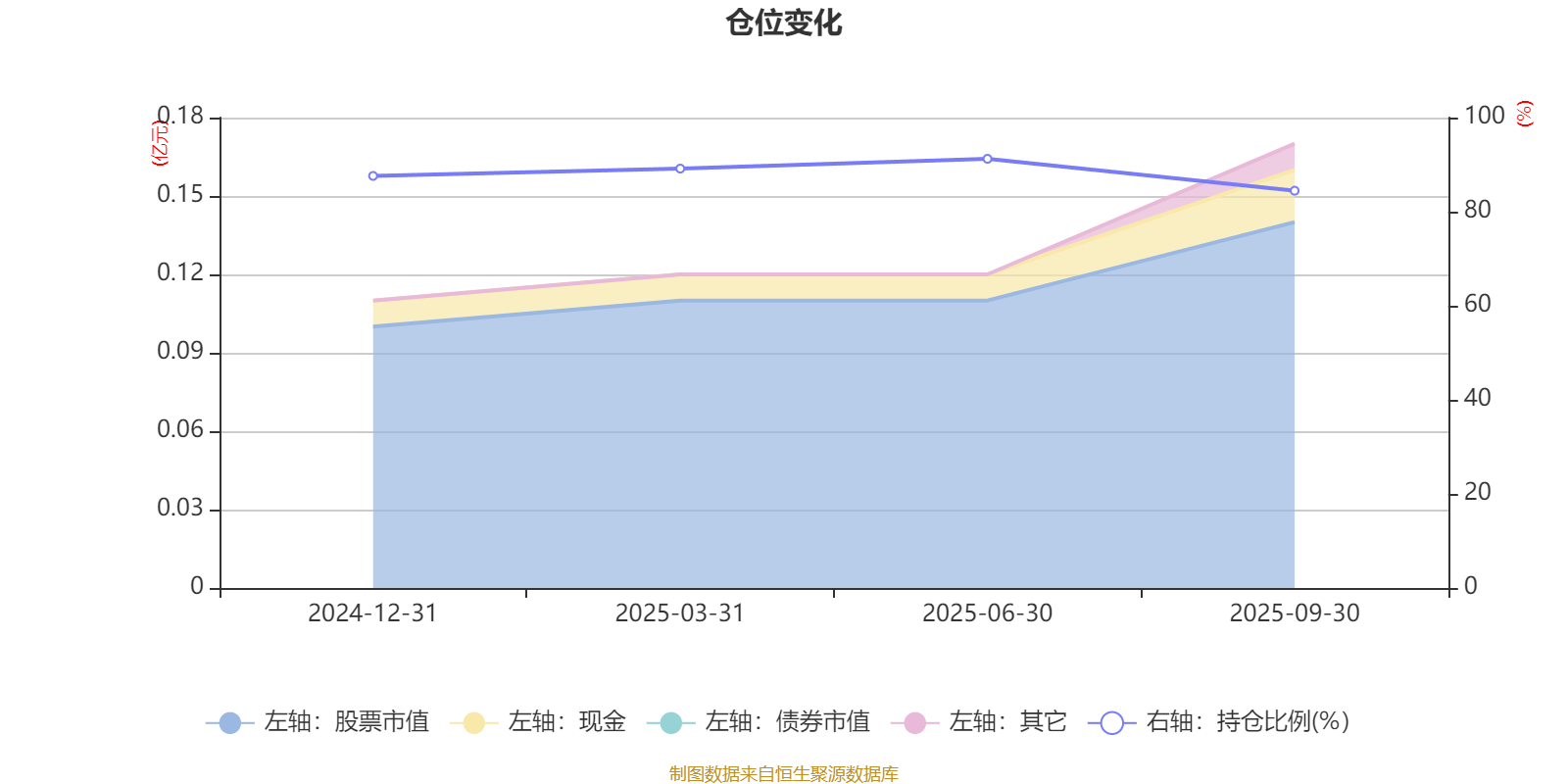据定期报告数据统计,成立以来平均股票仓位为88.12%,同类平均为86.77%。2025年上半年末基金达到91.24%的最高仓位,2025年三季度末最低,为84.46%。