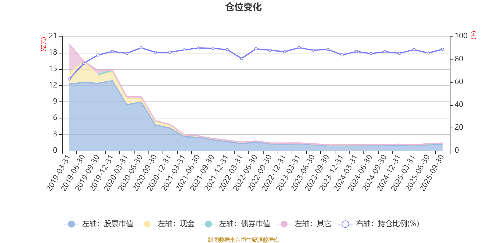 据定期报告数据统计,近三年平均股票仓位为86.99%,同类平均为72.35%。2023年一季度末基金达到90.2%的最高仓位,2019年一季度末最低,为62.76%。