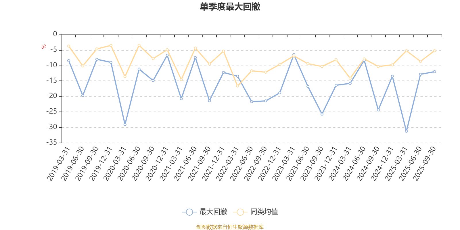 截至10月29日,基金近三年最大回撤为41.14%,同类可比基金排名952/1274。单季度最大回撤出现在2025年一季度,为31.28%。