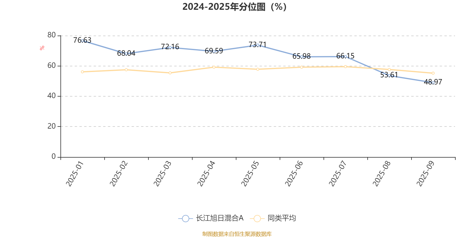 通过所选区间该基金净值增长率分位图,可以观察该基金与同类基金业绩比较情况。图为坐标原点到区间内某时点的净值增长率在同类基金中的分位数。
