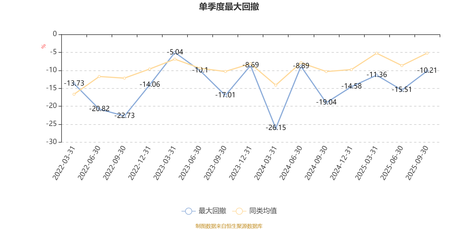 截至10月29日,基金近三年最大回撤为35.64%,同类可比基金排名735/1274。单季度最大回撤出现在2024年一季度,为26.15%。