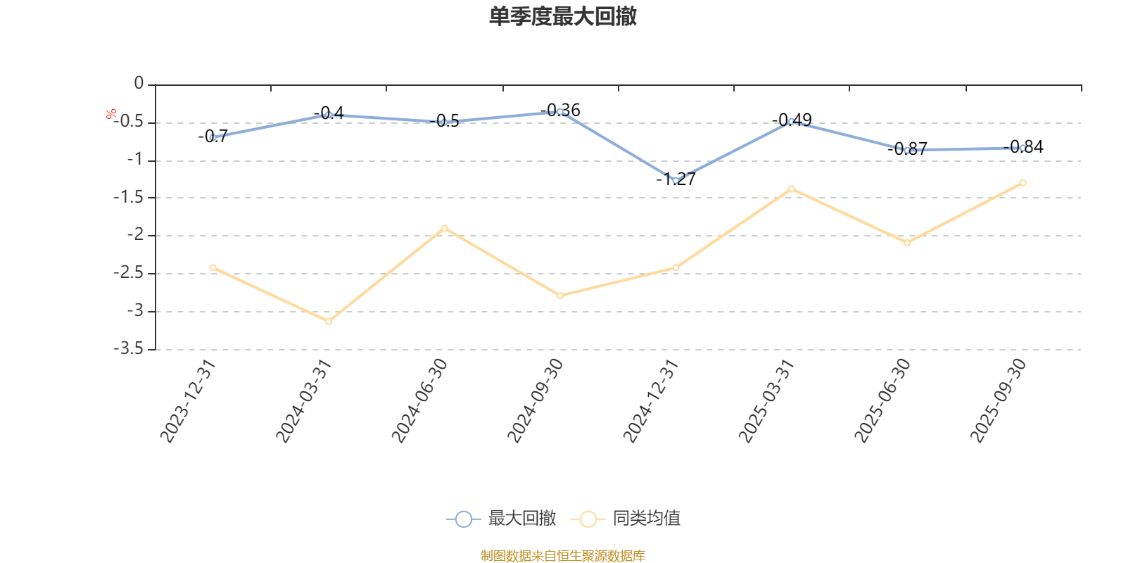 截至10月29日,基金成立以来最大回撤为1.27%。单季度最大回撤出现在2024年四季度,为1.27%。