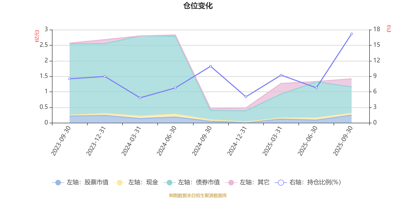 据定期报告数据统计,成立以来平均股票仓位为8.7%,同类平均为19.14%。2025年三季度末基金达到17.2%的最高仓位,2024年一季度末最低,为4.84%。