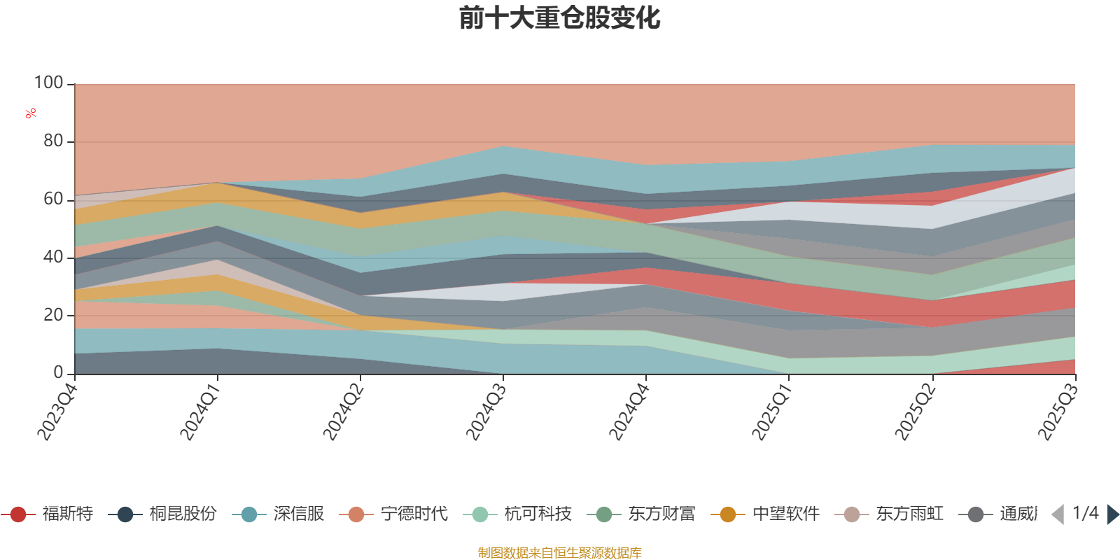 该基金持股集中度较高,近2年前十大重仓股集中度长期超过60%。截至2025年三季度末,基金十大重仓股分别是通威股份、晶澳科技、艾为电子、隆基绿能、爱旭股份、杭可科技、明阳智能、福莱特、大全能源、福斯特。