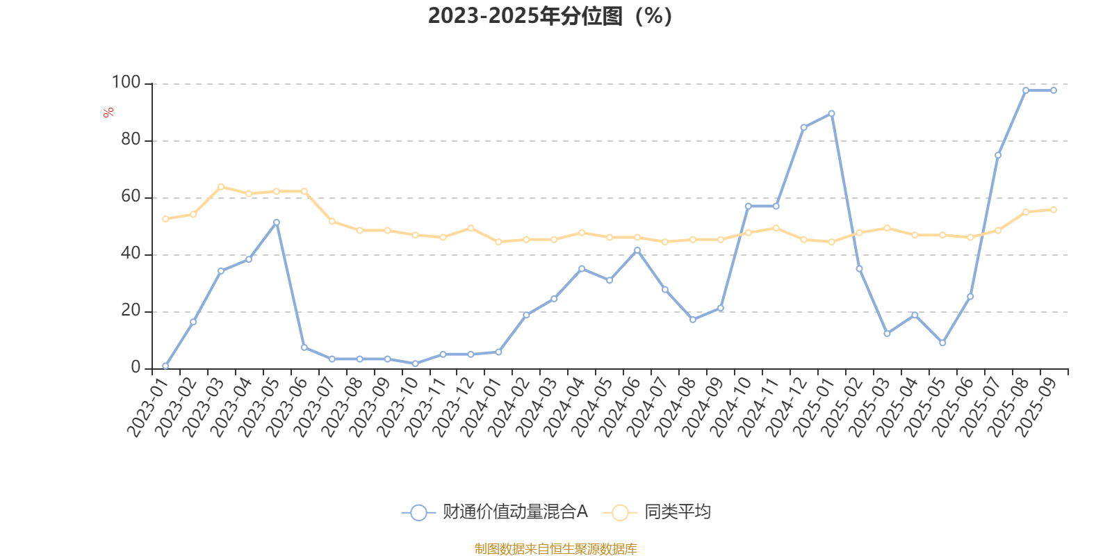 通过所选区间该基金净值增长率分位图,可以观察该基金与同类基金业绩比较情况。图为坐标原点到区间内某时点的净值增长率在同类基金中的分位数。