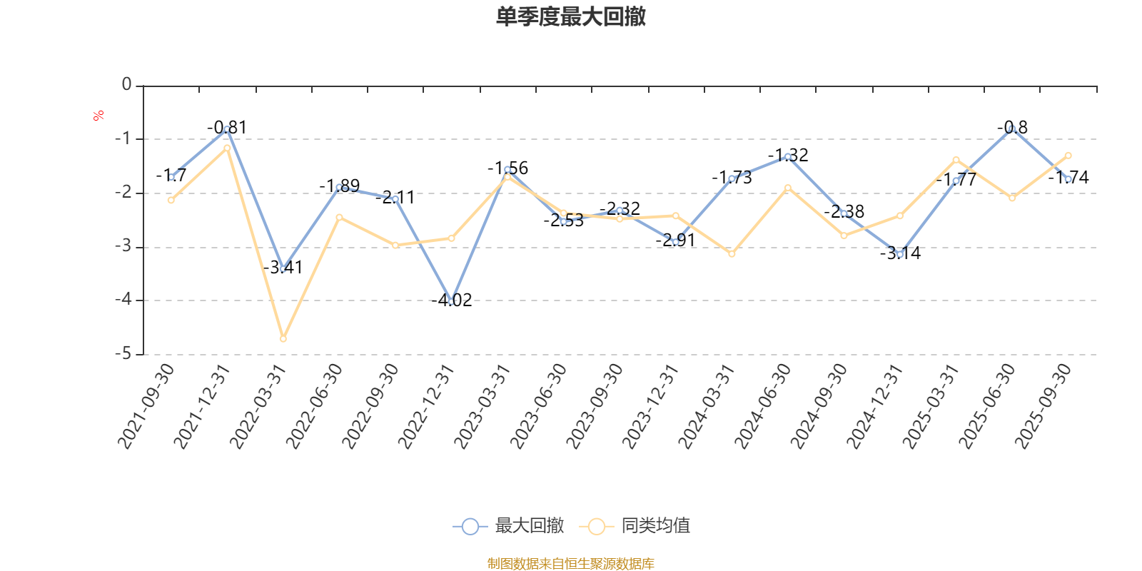 截至10月29日,基金近三年最大回撤为6.31%,同类可比基金排名268/534。单季度最大回撤出现在2022年四季度,为4.02%。
