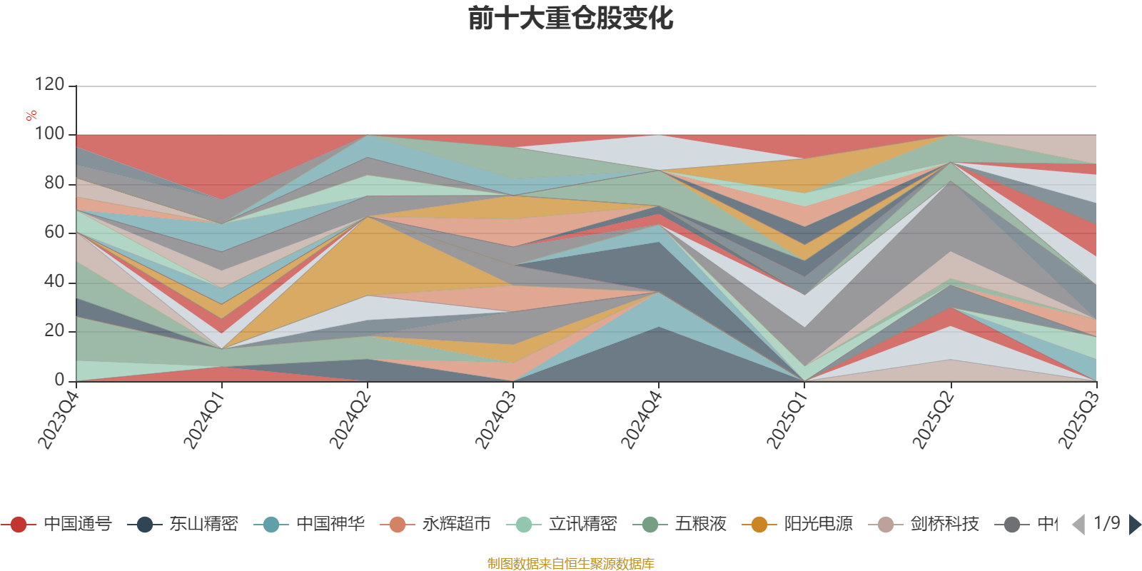 该基金持股集中度较高,近2年前十大重仓股集中度长期超过60%。截至2025年三季度末,基金十大重仓股分别是生益科技、渤海汽车、豪鹏科技、爱柯迪、南亚新材、江西铜业、均胜电子、欣旺达、东方财富、天孚通信。