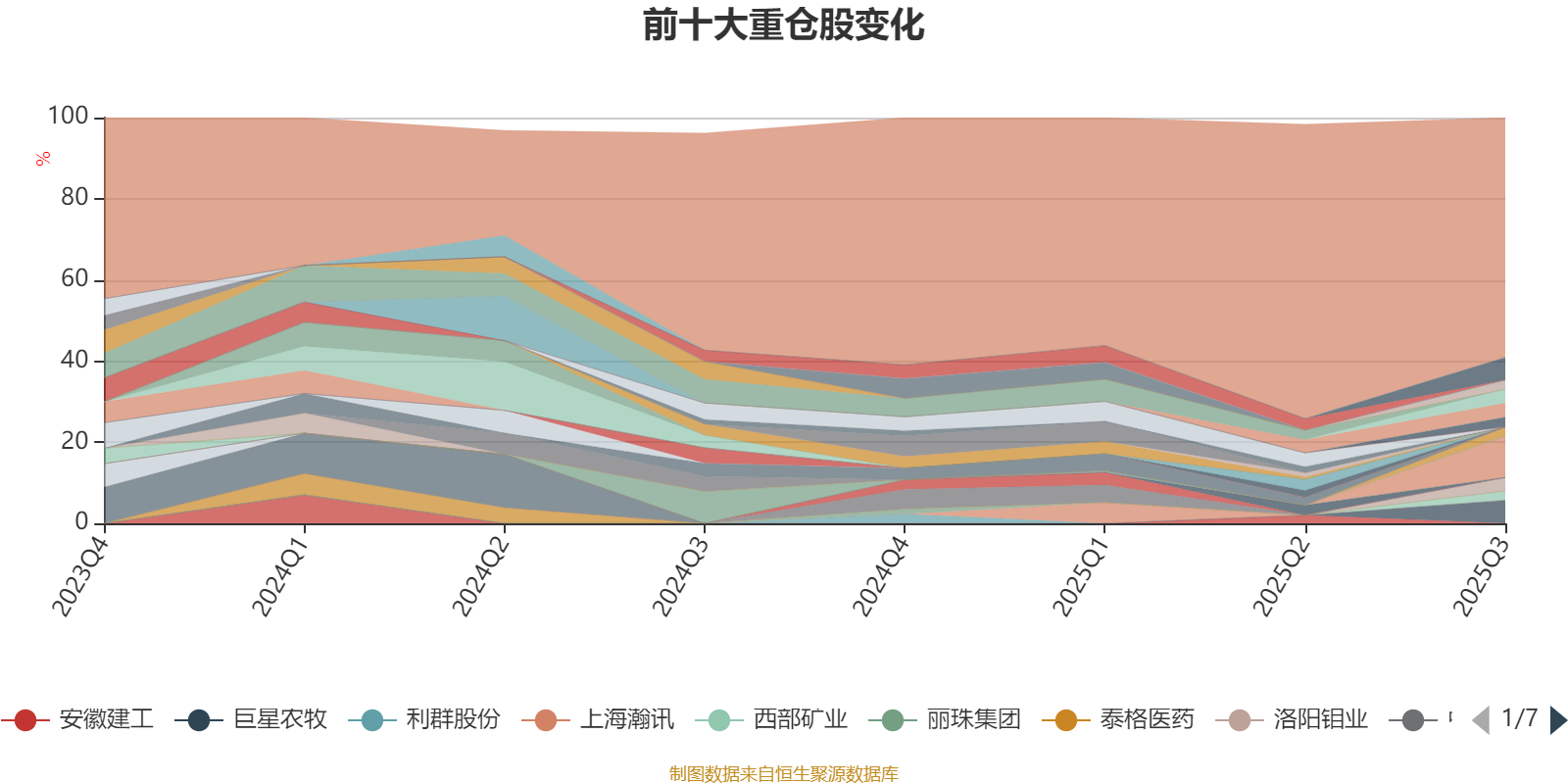 截至2025年三季度末,基金十大重仓股分别是太阳纸业、巨星农牧、恒力石化、中芯国际、长江电力、洛阳钼业、优必选、西部矿业、唐人神、拓荆科技。