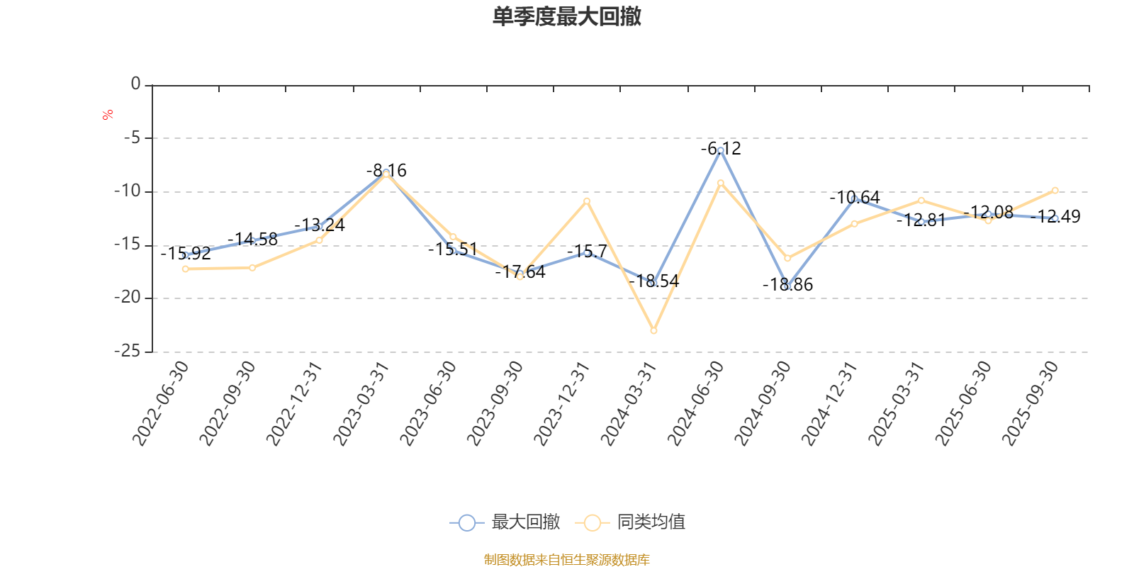 截至10月29日,基金近三年最大回撤为44.54%,同类可比基金排名90/159。单季度最大回撤出现在2024年三季度,为18.86%。