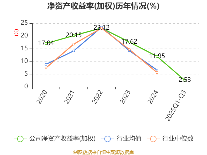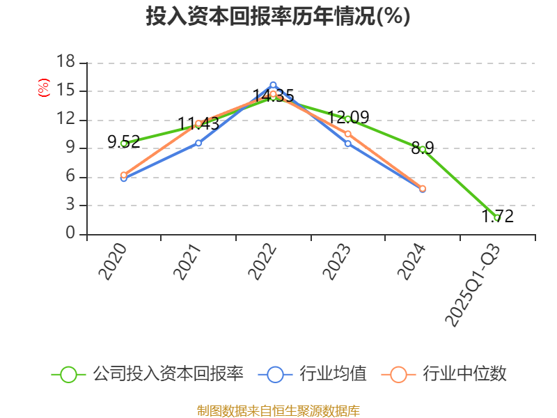 盈利能力方面, 2025年前三季度公司加权平均净资产收益率为2.53%,同比下降7.68个百分点。公司2025年前三季度投入资本回报率为1.72%,较上年同期下降6.01个百分点。