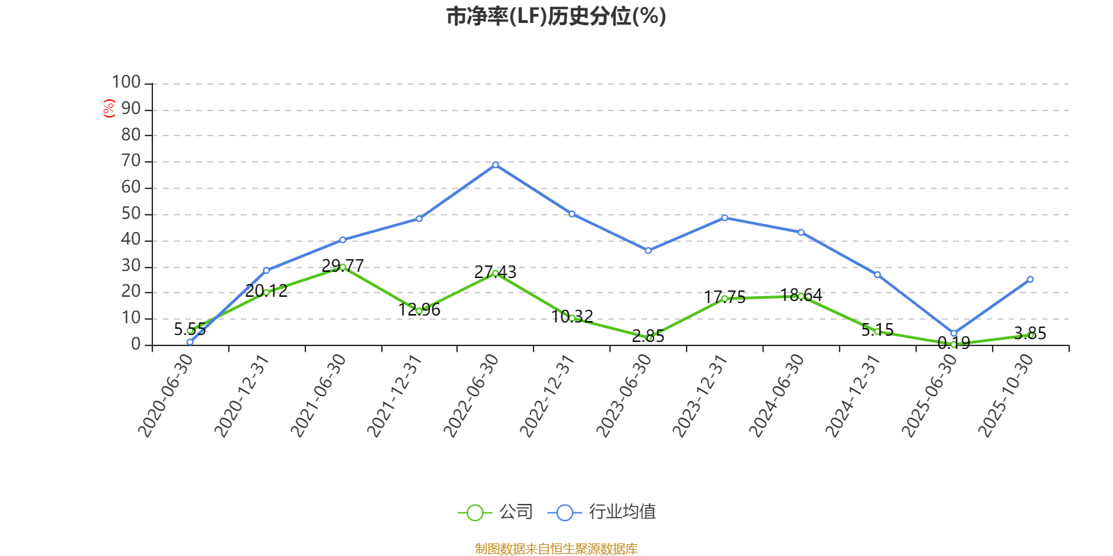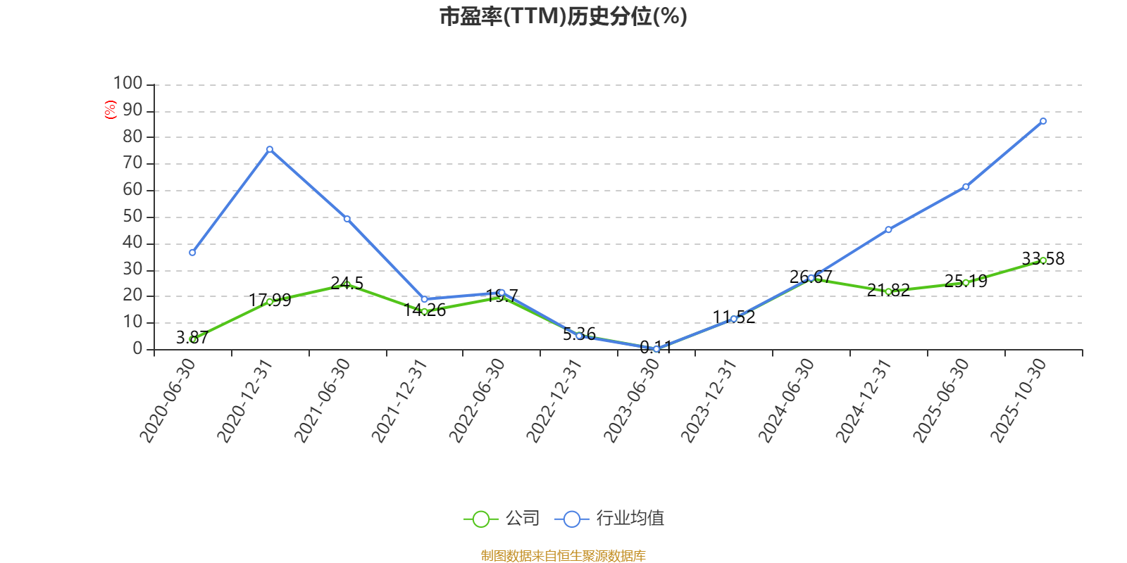市盈率、市净率为负时,不显示当期分位数,会导致折线图中断。