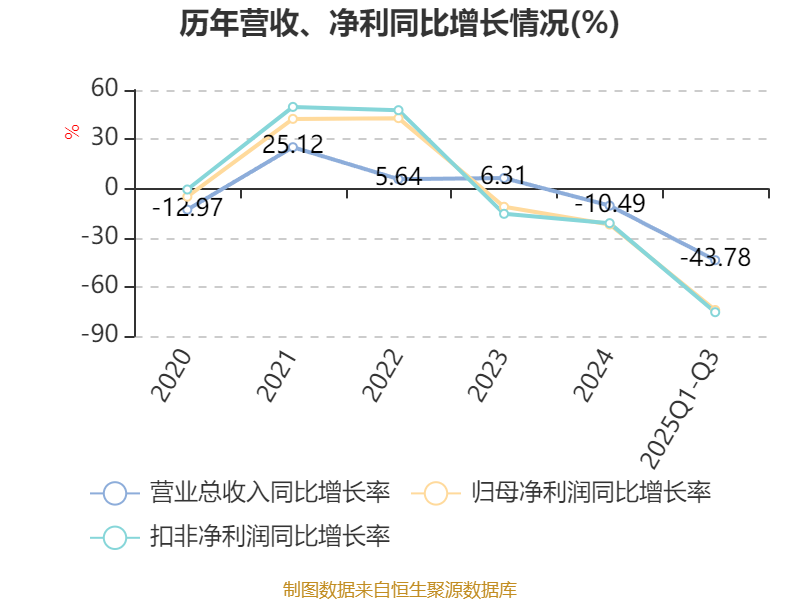 资产重大变化方面,截至2025年三季度末,公司在建工程合计较上年末增加88.13%,占公司总资产比重上升4.13个百分点;固定资产较上年末减少4.94%,占公司总资产比重下降3.07个百分点;货币资金较上年末减少29.38%,占公司总资产比重下降1.49个百分点;存货较上年末减少39.48%,占公司总资产比重下降1.42个百分点。