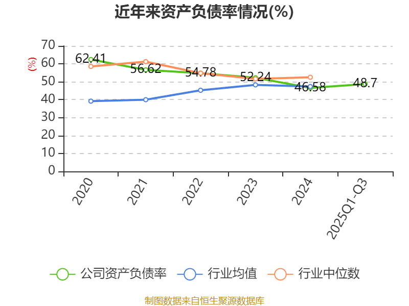 2025年前三季度,公司流动比率为0.57,速动比率为0.49。