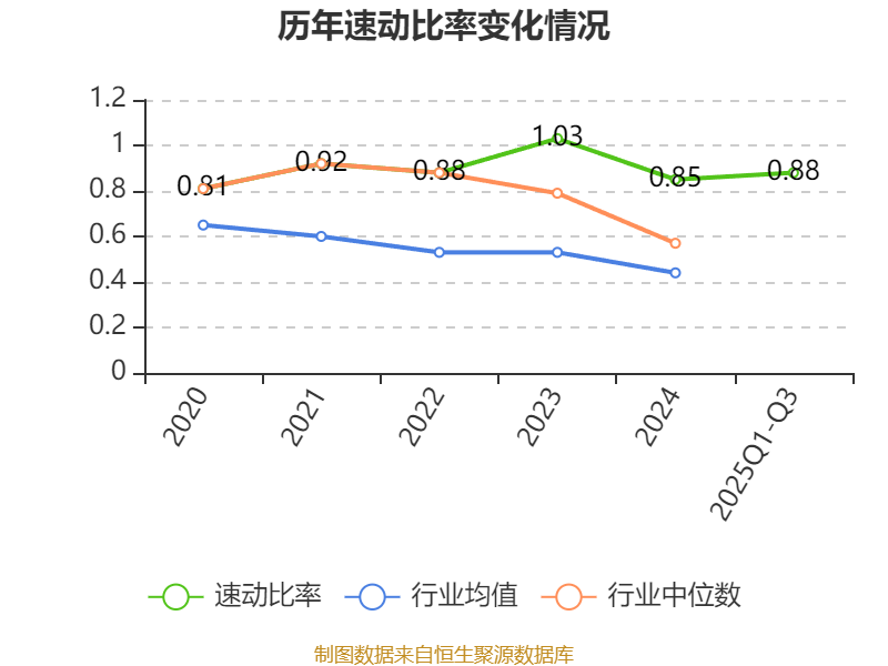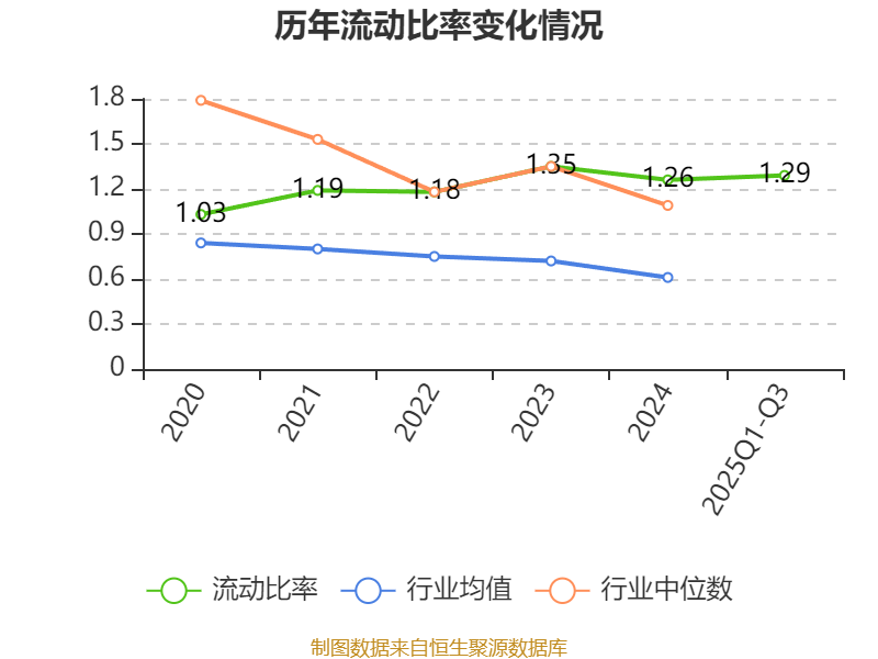 2025年前三季度,公司流动比率为1.29,速动比率为0.88。