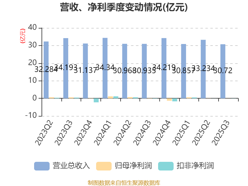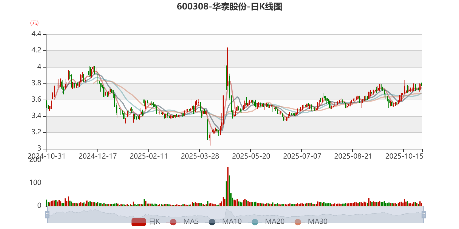 中证智能财讯华泰股份(600308)10月31日披露2025年第三季度报告。前三季度公司实现营业总收入94.81亿元,同比下降1.49%;归母净利润7258.66万元,同比下降56.68%;扣非净利润4074.64万元,同比下降74.39%;经营活动产生的现金流量净额为1.8亿元,同比增长15.73%;报告期内,华泰股份基本每股收益为0.05元,加权平均净资产收益率为0.79%。